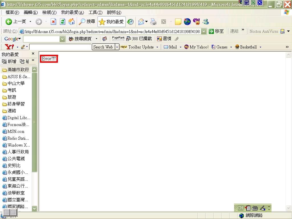 - 主題: [問題] 登出和進入後台管理都出現此畫面?