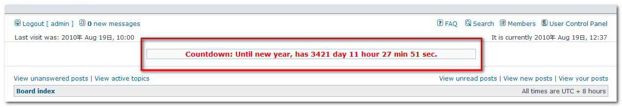 - 在您的論壇頁頂,增加一個倒數計時器。允許管理員經由「ACP -> 一般 -> 討論區特色」來控制與輸入倒數計時的數值。