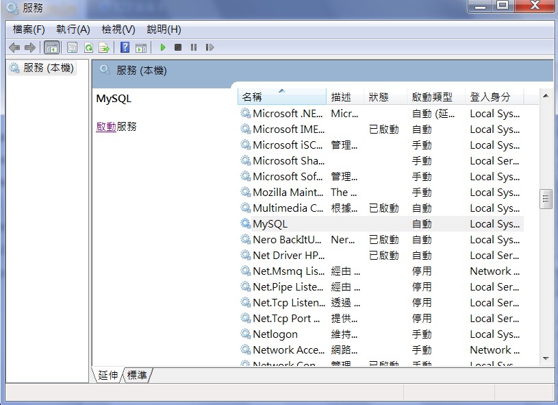 設定環境變數,可開機時自動啟用 MySQL 伺服器;