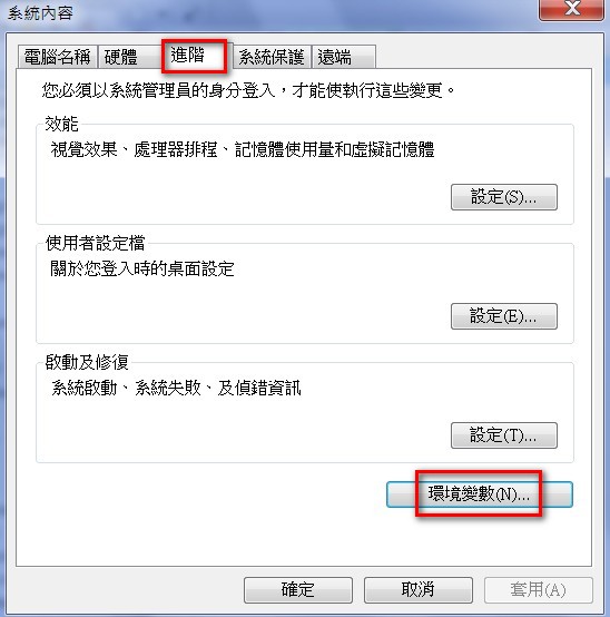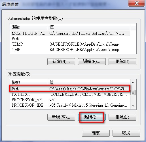 控制台 -> 系統及安全性 -> 系統 -> 進階系統設定 -> 環境變數 -> 系統變數 -> 編輯變數名稱「Path」的值。