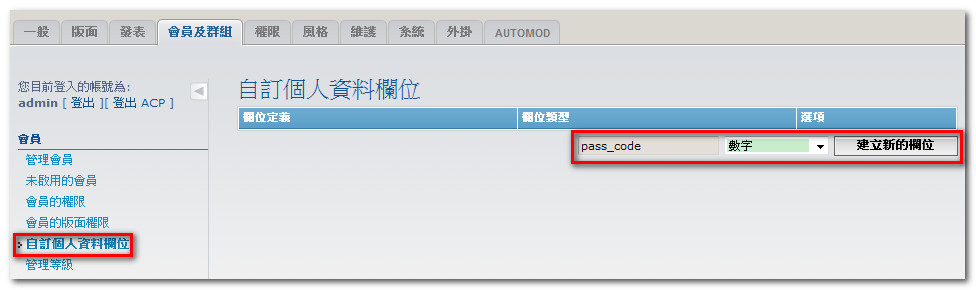 在您的管理員控制台 (ACP) 的 '會員及群組' 中, 可以找到 '自訂個人資料欄位' 的頁面.