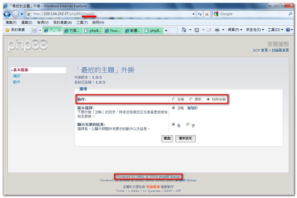 如果您安裝的外掛,(作者)有支援 UMIL 的話,那麼您的論壇也必須擁有 /umil/ 相關檔案,才得以安裝它。