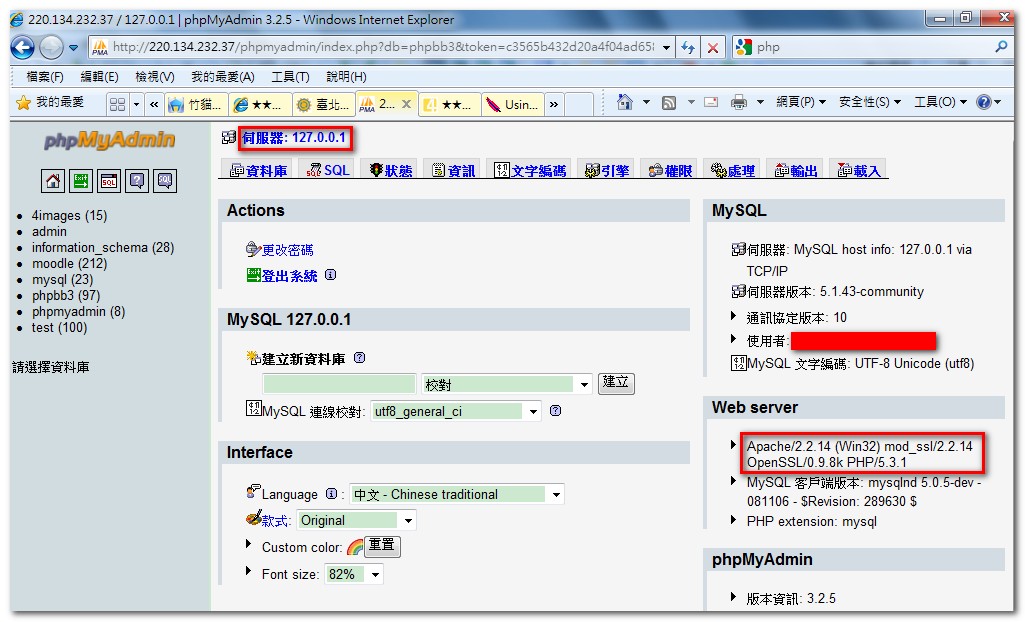 也就是說,將您所有的網站系統(例如:4images、moodle、phpbb3、phpmyadmin 等),其根目錄的設定檔(一般為 config.php)裡頭的
