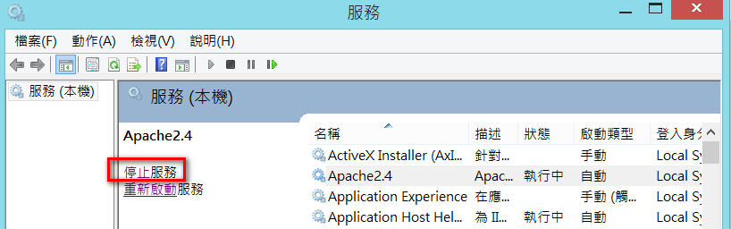 - 結束(關閉)系統工具列上的「Apache Monitor」。