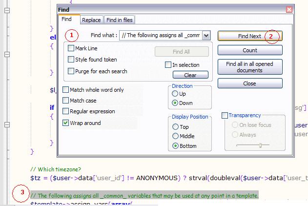 您必須使用文字編輯器去開啟檔案. 例如: 我使用 Notepad++, 它是一個流行的開放源碼之編輯器. 在 Window 系統, 其他基本的文字編輯器是 Wordpad 和 Notepad. Frontpage 以及 Dreamweaver 並不是文字編輯器. 不建議使用 Frontpage 以及 Dreamweaver 去開啟任何 phpBB 的檔案, 因為很有可能會破壞部分代碼的結構而使它失效.