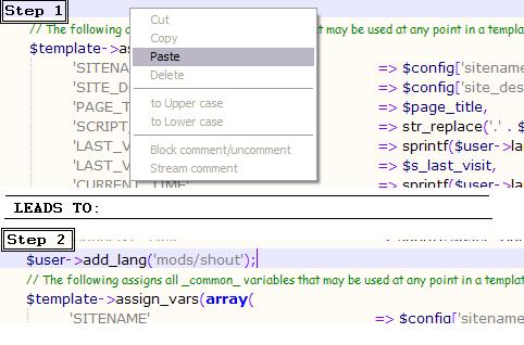 現在您必須應用這個動作. 回到您的文字編輯器. 因為這是 '之前增加' 的動作, 所以您必須將要增加的代碼, 直接貼在您所找到的代碼之前 - 例如: 直接貼在該行之上.