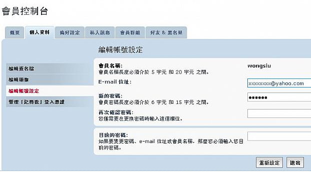 - 主題: 编輯帳號設定板會員名稱及新密碼欄不見了