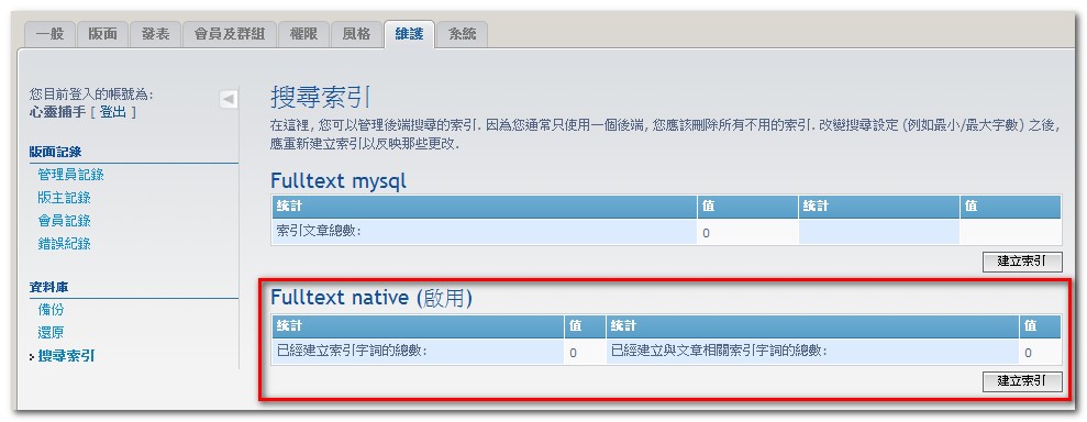 ps. '搜尋索引' 尚未轉換, 必須稍後重新建立 後記: