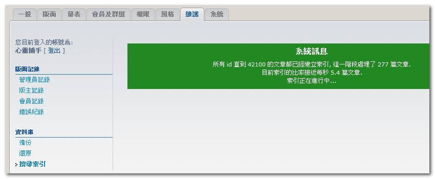 http://phpbb-tw.net/phpbb/viewtopic.php?f=116&t=50665 2. 索引進行中 3. 若發生網頁錯誤, 則不必理會;